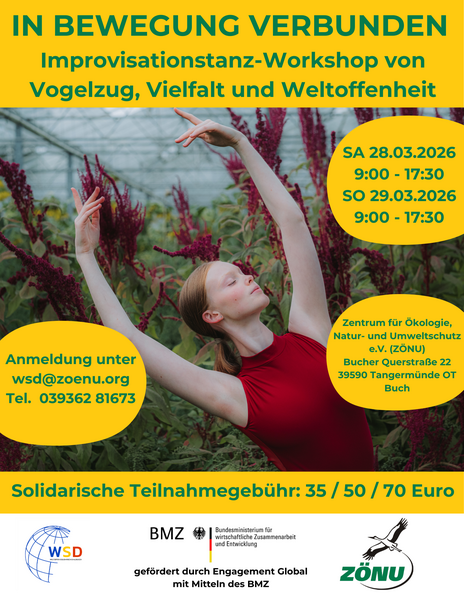 Tangermünde, 12.Februar 2026. Das ZÖNU veranstaltet am 28.03. und 29.03.2026 einen Improvisationstanz-Workshop inspiriert von Vogelzug, Vielfalt und Weltoffenheit.
