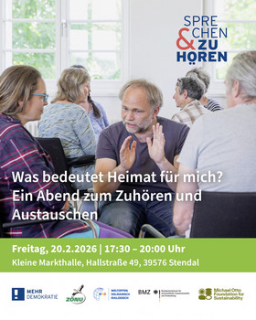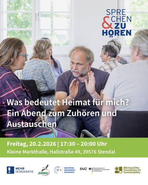 Stendal, 12.Februar 2026. Was bedeutet Heimat für Sie? Ob kürzlich zugezogen oder Urgestein - wir laden Sie ein zu einem moderierten Gesprächsabend, bei dem persönliche Erfahrungen im Mittelpunkt stehen. In kleinen Gruppen hören wir einander zu, teilen Perspektiven und kommen respektvoll ins Gespräch. Kommen Sie vorbei, bringen Sie Ihre Sicht mit, oder hören Sie einfach zu. Keine Kosten für Eintritt/Teilnahme. Für Essen und Getränke ist gesorgt.