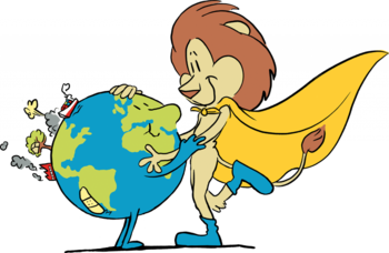 Gamification! Durch das Wimmelbild finden Kinder leicht in die Themen, setzen eigene Ideen praktisch um und erhalten Anerkennung. Weltretter-Pate Eric heißt alle willkommen.